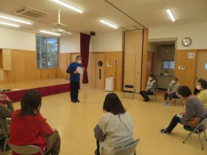 全ての動きを笑いに変えて動いたり、休憩の合間には、子育てについての脳科学やプラスの肯定感を高める声かけについて等、育児の話も行って頂き実りある楽しいひと時となりました。