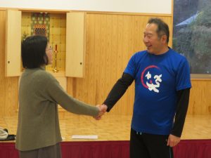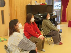 今年度、最後の育児講座は日田市よりスマイルラボの佐藤さんを迎えて「笑いヨガ」でした!参加は少なかったのですが、園児の祖母が地域の方々を連れてきて頂き、楽しい講座になりました。